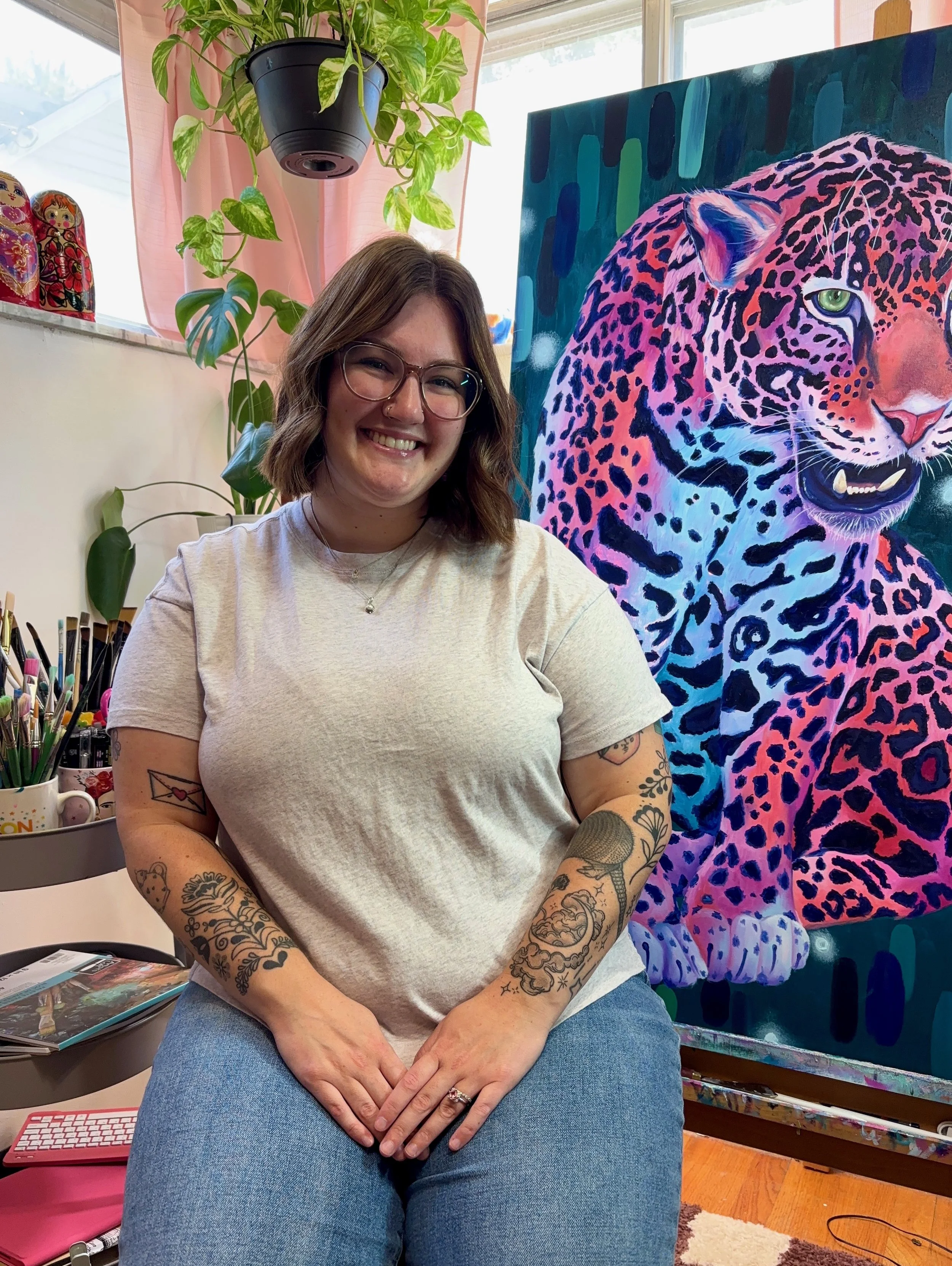 Abby Pennington is an oil and acrylic painter based in Ohio. She loves bright colors, bold patterns and interprets the world through a whimsical lens.